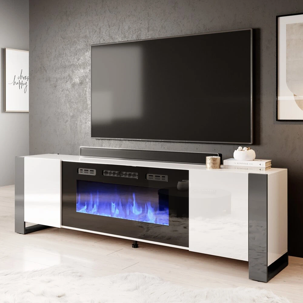 Dante Black Rgb Led Lighting Tv Unit With Electric Fireplace Sue E Furniture
