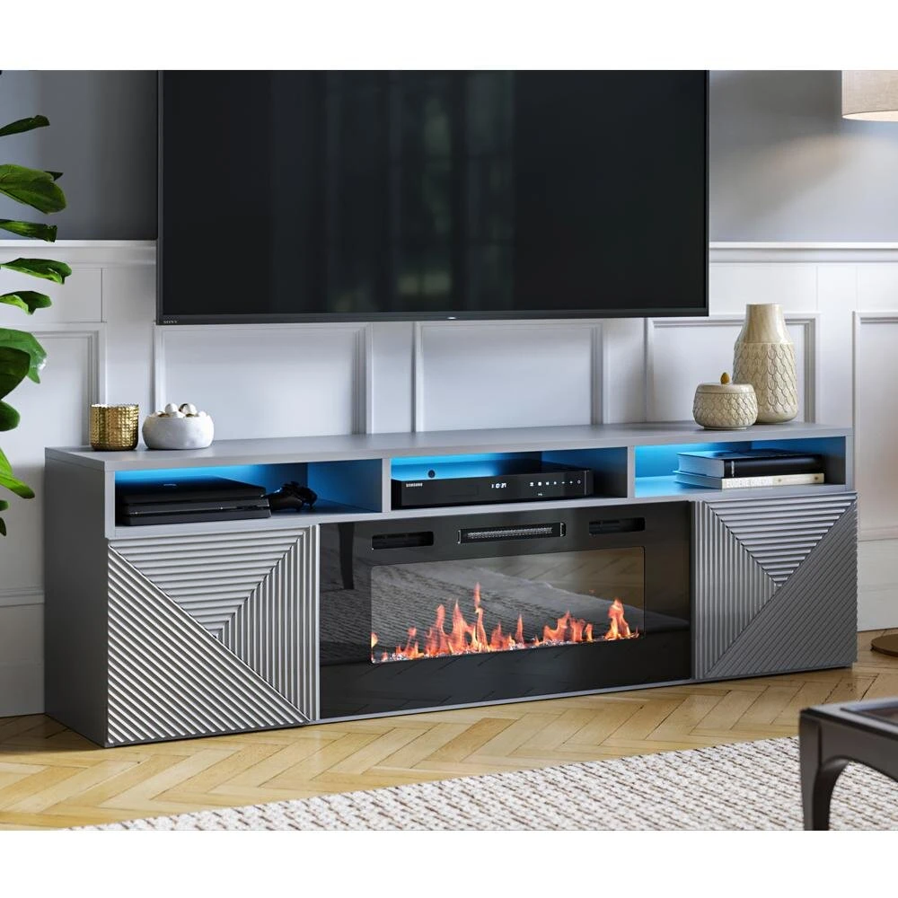 Delaine Tv Stand For Tvs Up To 88 With Electric Fireplace Review Modern Tv Stand With Led Lights Prime Spaces Assembly Services